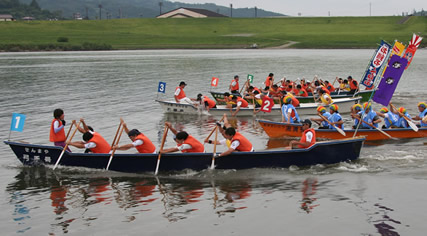 大会の歴史は古く、1984年から開催、10人乗りボートを使用し、同町の雄川河口で開かれ、塩入橋から根占大橋までの380米8艇で一般レースが行われる。