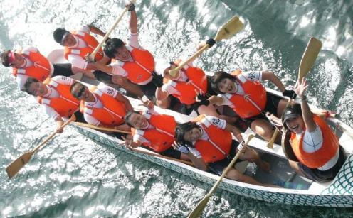 300m(往復)を8人漕ぎのドラゴン・カヌー(太洋産業貿易社製)で競争する。