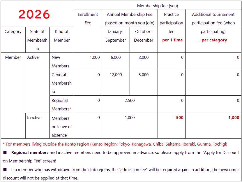 | 2026年 | 会 費(円) | ||||||